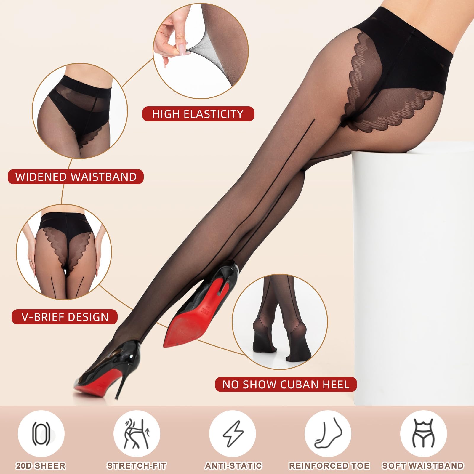 - Different Occasions: Backseam pantyhose matched with hot pants, dresses, skirts and short, high heels, suitable for everyday wear, leisure, work, Halloween party activities, costume parties and so on.