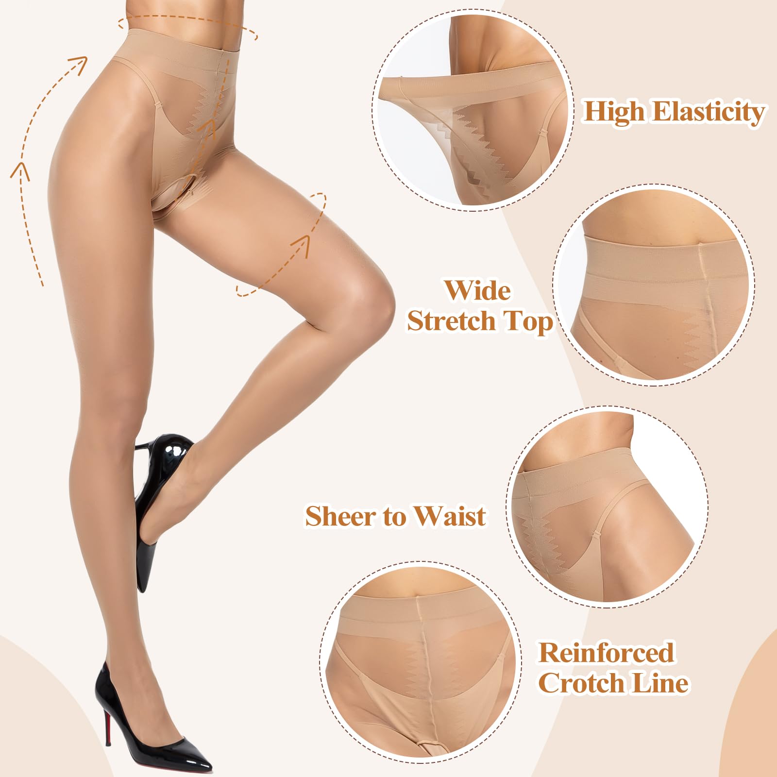 - ◆Sheer to Waist - Our seamless sheer nylons with sheer to waist design, will show off the natural beauty of your legs,and look more elegant under your skirt. Therefore it is the perfect choice for those that want sexy leg wear without giving up the versatility and elegance of a plain pair of sheer tights.